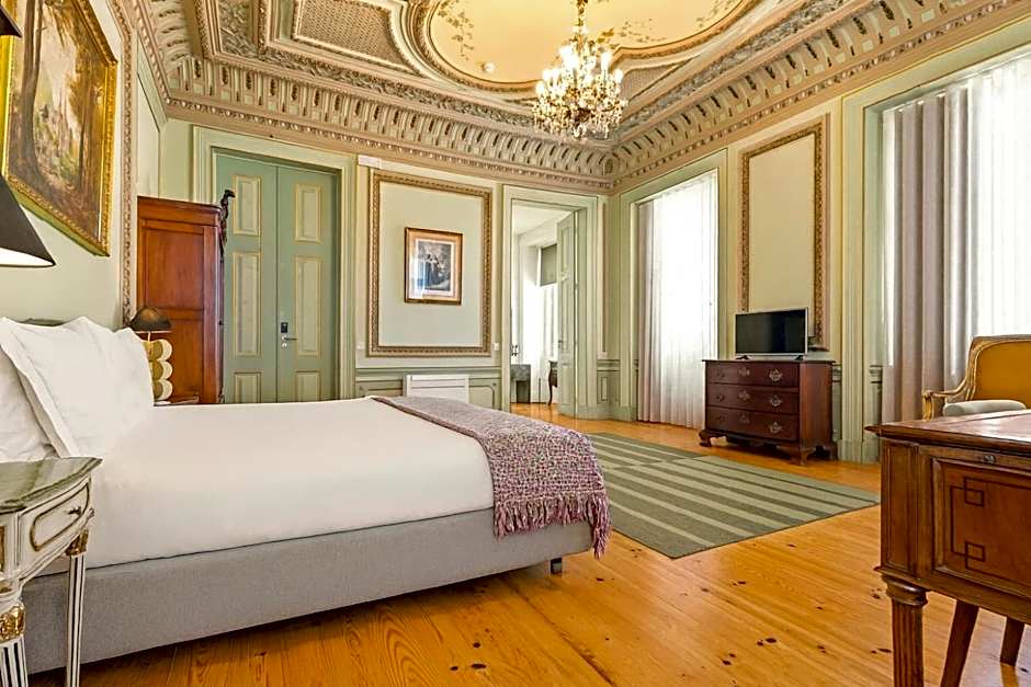 The deluxe suite stands out for its decoration and 19th century carved ceilings and has a double bed, private bathroom with complementary toiletries, air conditioning/heating, desk, telephone, coffee machine, mini-bar, safe, cable TV and free Wi-Fi.